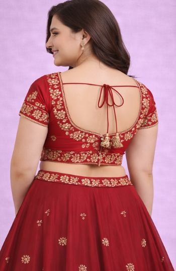 Heavy embroidered bridal lehenga with premium zari work and matching dupatta.