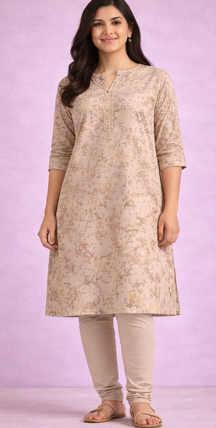 | Cotton kurta paired with comfortable churidar. | Sand | Cotton |