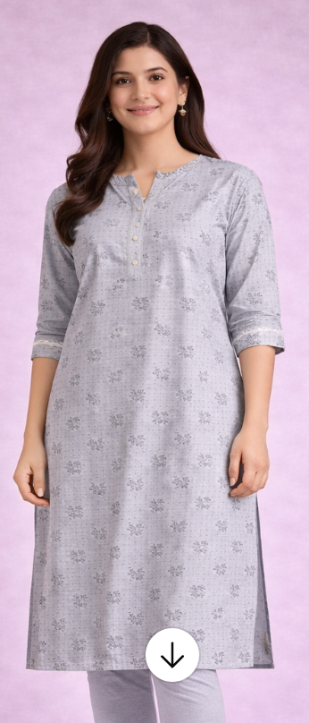 | Lightweight printed rayon set with stretch churidar. | Light Grey | Rayon Blend |