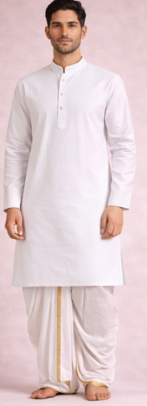 | Classic dhoti set with soft cotton kurta and matching dhoti. | White | Cotton |