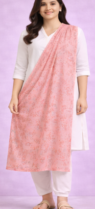 | Fine printed dupatta with airy flow. | Rose Pink | Rayon |