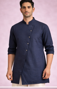 | Asymmetric kurta with stylish fall for modern events. | Navy | Cotton Silk |