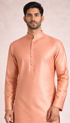 | Pastel-toned silk kurta ideal for daytime functions. | Peach | Silk Blend |