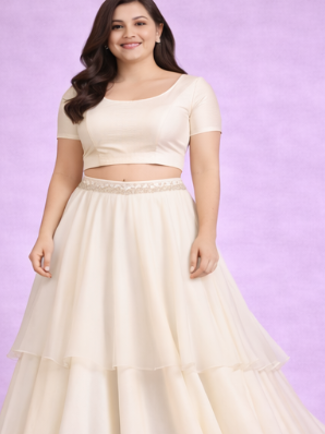 Soft-flowing lehenga with premium fabric layering. Ivory Georgette