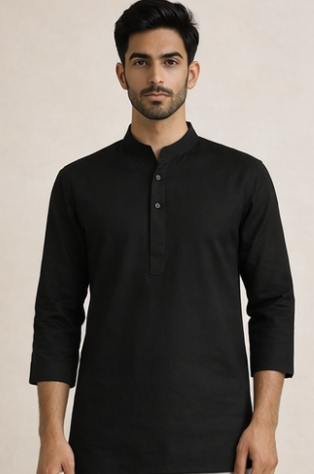 Slim-fit cotton kurta that offers comfort with a contemporary look. Black 100% Cotton