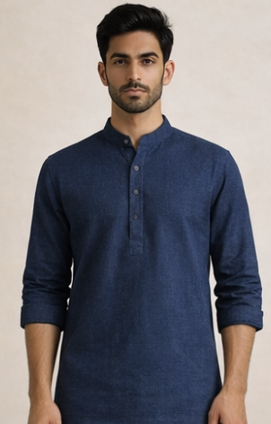 Classic daily-wear kurta crafted with fine cotton for durability and comfort. Navy Blue Cotton Slub