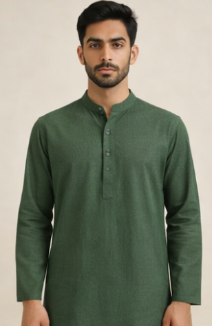 Versatile kurta made from lightweight cotton ideal for daily casual wear. Forest Green Cotton Slub