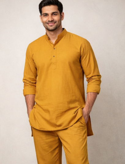 | Relaxed-fit cotton kurta pajama set perfect for everyday comfort. | Mustard Yellow | 100% Cotton |