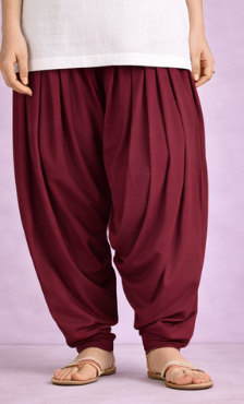 Classic Patiala pant with soft pleats and airy comfort. Maroon Cotton