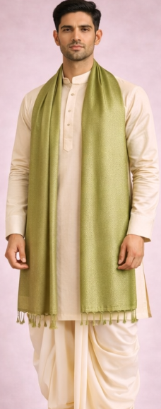 | Textured stole with subtle motifs. | Olive | Silk Blend |