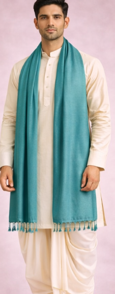 Lightweight woven stole for events. Teal Silk Blend