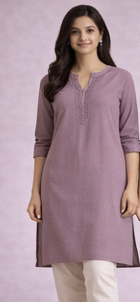 Soft rayon kurta with detailed V-neck. Mauve Rayon